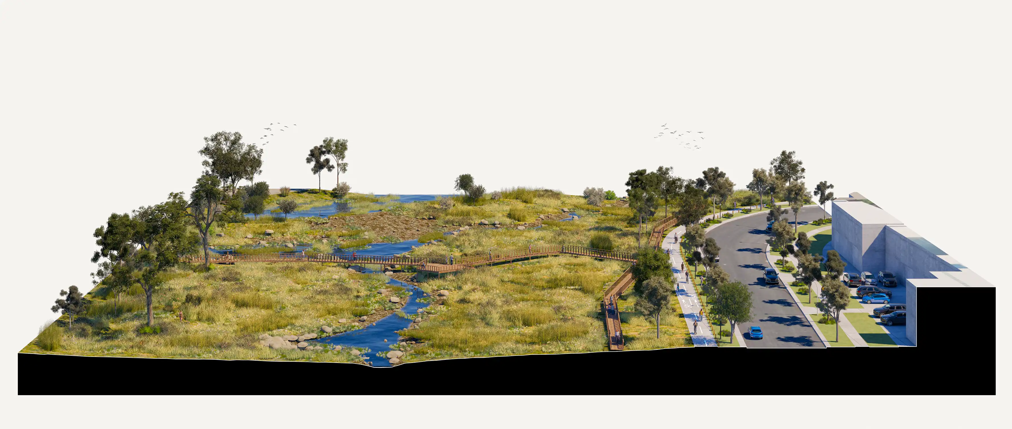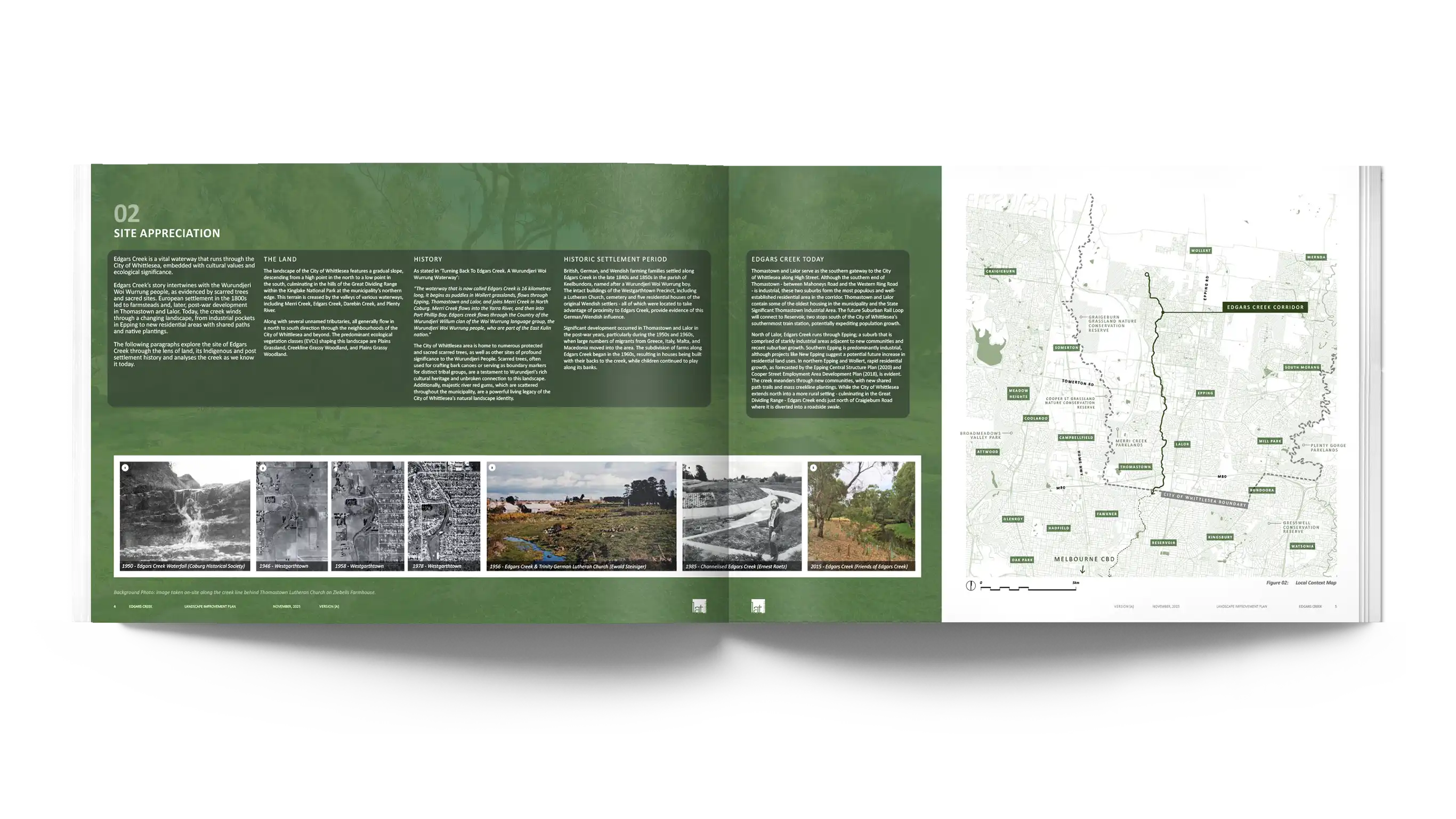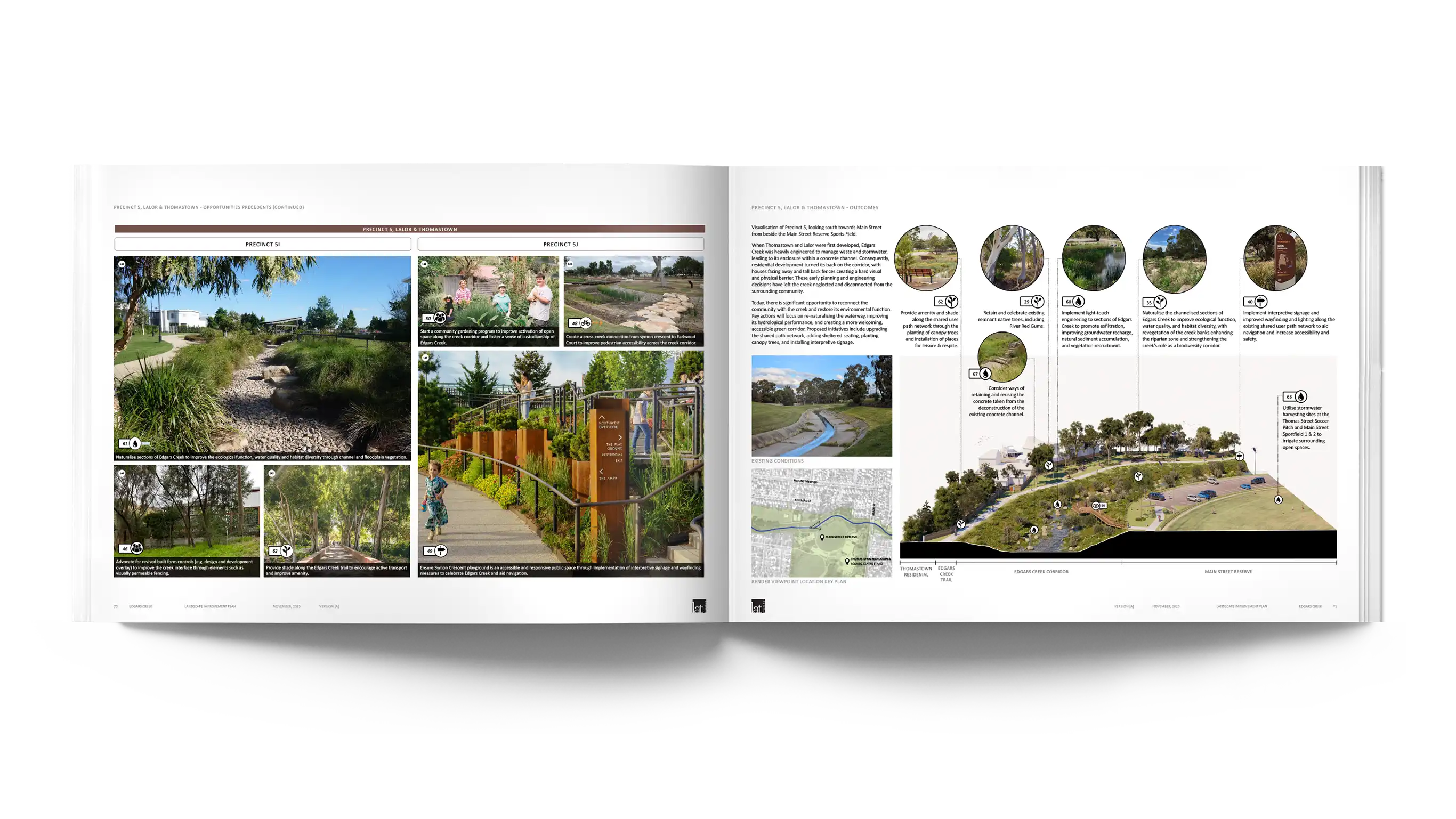 In 2025, LatStudios completed the Edgars Creek Landscape Improvement Plan for the City of Whittlesea. Edgars Creek is a vital waterway running through the centre of the municipality, steeped in cultural values and ecological significance. Although now degraded, neglected and partly channelised in sections, the Creek has the potential to form a critical recreational and environmental green spine for Whittlesea.