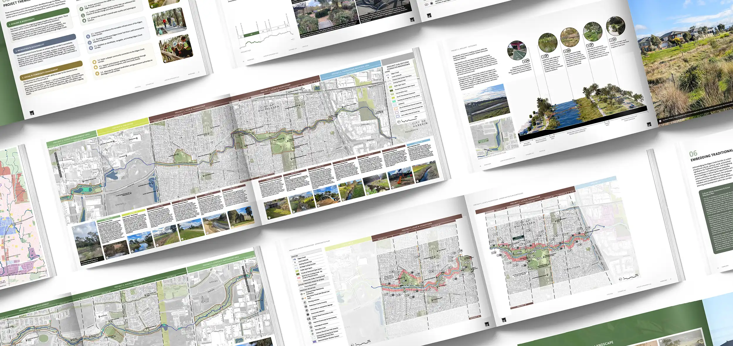 The Landscape Improvement Plan establishes a clear and integrated vision for transforming Edgars Creek into a vibrant, resilient and inclusive green spine that reflects the area’s history, culture and communities. It addresses key considerations including Traditional Owner custodianship and connection to Country, connectivity and public access, visibility and safety, interfaces with adjacent land, and the protection and enhancement of the waterway.