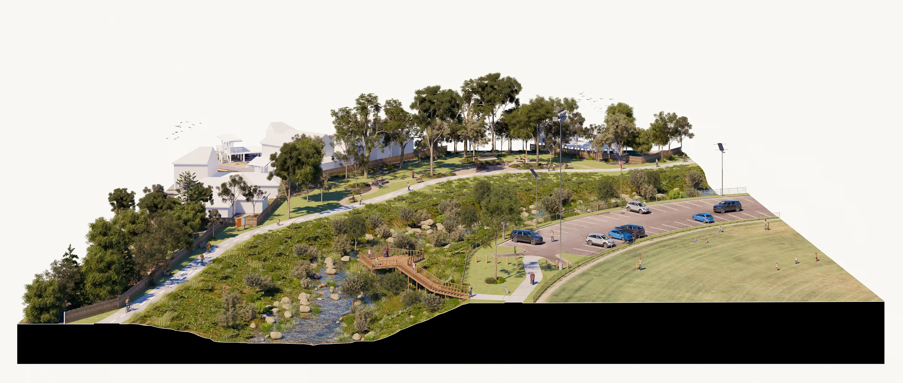 The Plan also provides a prioritised suite of initiatives to support future funding, staging and implementation, helping to secure long-term ecological health, better connectivity, improved public amenity, strong community engagement and the celebration of cultural identity across the Edgars Creek Corridor.